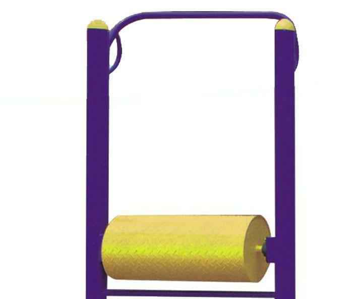 旋风轮能增强人体腿部肌肉力量,提高有氧运动能力和协调能力。它的使用方法是:锻炼者先踏上脚踏架,手扶半圆形扶手踏上滚筒轮,然后手扶横扶手,两脚交替向后蹬滚筒轮转动。转动速度据锻炼者具体情况而异,不宜过快。